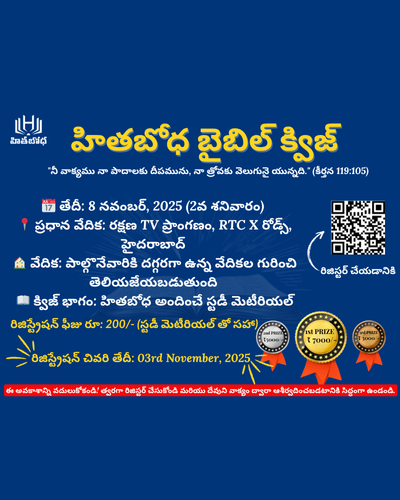 © 2024. ఈ వెబ్ సైట్ యొక్క సర్వ హక్కులు హితబోధ.కామ్ నకు చెందినవి.